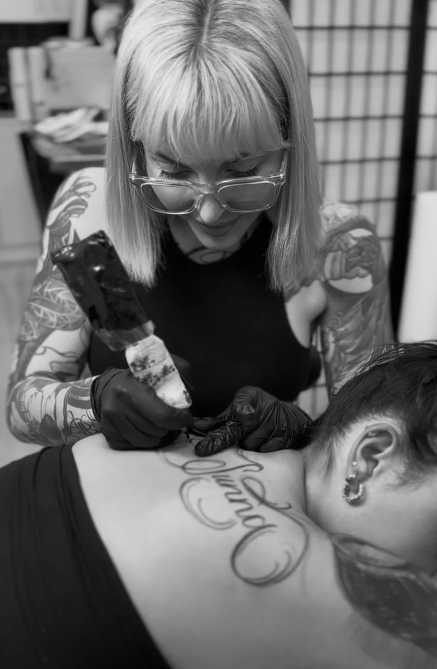 Starting out in Byron Bay, Mikhala moved to Sydney in 2023 and has been tattooing for four years. She specialises in fine line lettering, florals and realism with a love for delicate and detailed designs that flow with the body.